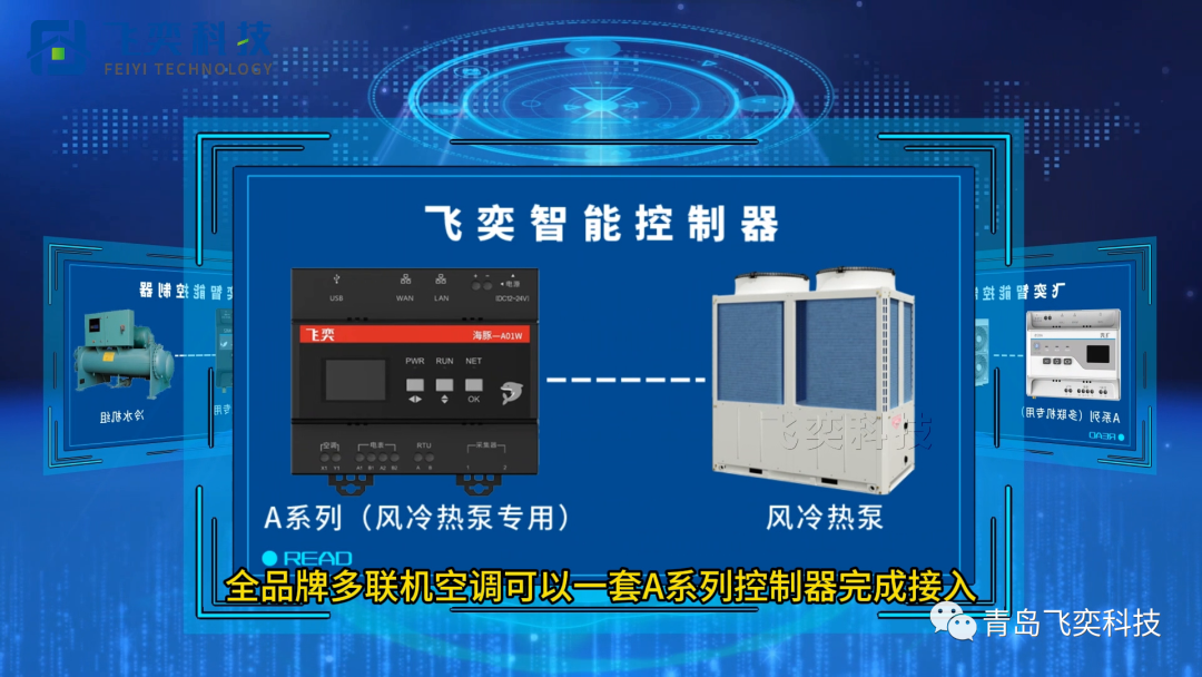 面對此情此景,飛奕專門研發了(面向冷水機組的)智能控制器,可以實現對中央空調的集中控制和智能管理,全品牌多聯機空調可以一套A系列控制器完成接入,全品牌水冷機組空調可以一套W系列控制器完成接入;幫助綜合能源公司實現—快速降碳、高效節能與數字化運維。
