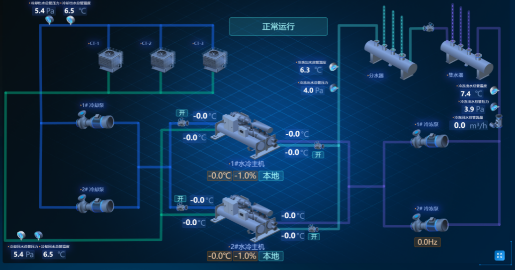 項(xiàng)目主要對(duì)天華文化中心內(nèi)的圖書館、展覽館、大劇院等核心場館的6套中央空調(diào)主機(jī)系統(tǒng)進(jìn)行了智能化改造。原本分散、孤立的冷水機(jī)組、水泵、冷卻塔及閥門等設(shè)備,通過飛奕的機(jī)房群控系統(tǒng)實(shí)現(xiàn)了集中監(jiān)控與聯(lián)動(dòng),提升了空調(diào)系統(tǒng)協(xié)同水平與管理效率。