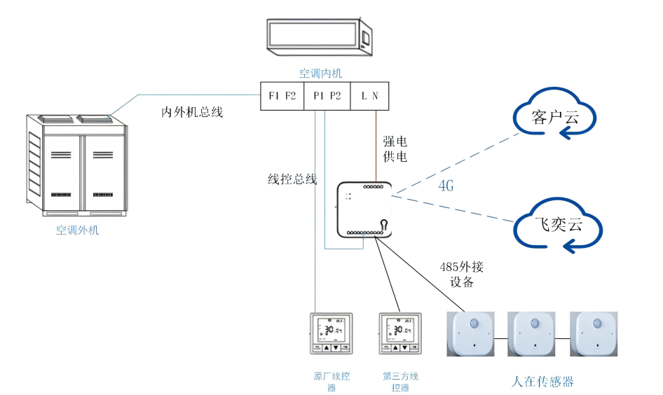 可以單獨(dú)接空調(diào)使用,也可以與空調(diào)原廠線控器共存且主從自適應(yīng)無需手動(dòng)設(shè)定,也可以對(duì)接第三方線控器替換原廠線控器。